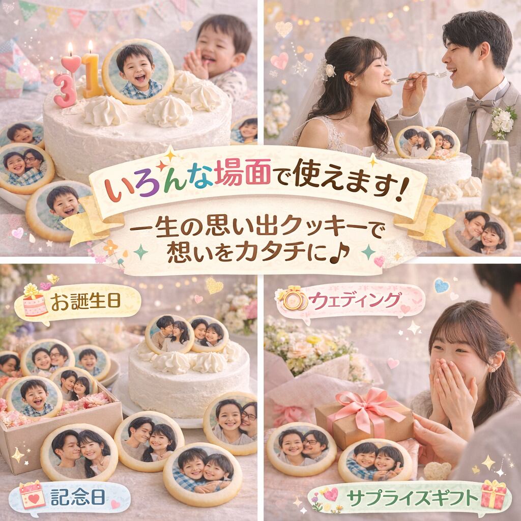 クッキーに、専用機器で写真やイラストをプリントしたオリジナルクッキーを製造・販売しています。